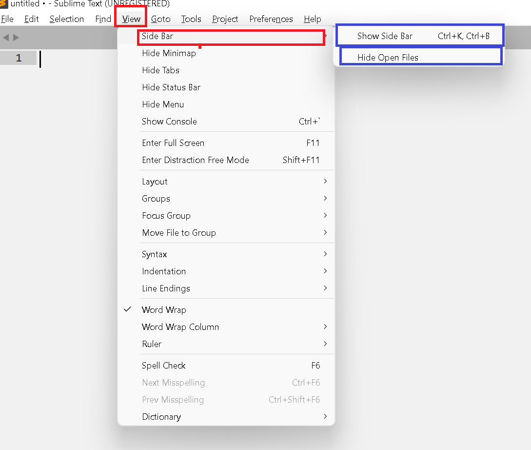 This post explains 2 ways to show and hide the sidebar in the Sublime text editor. The first way is using GUI and the second way using the shortcut command in Windows and macOS